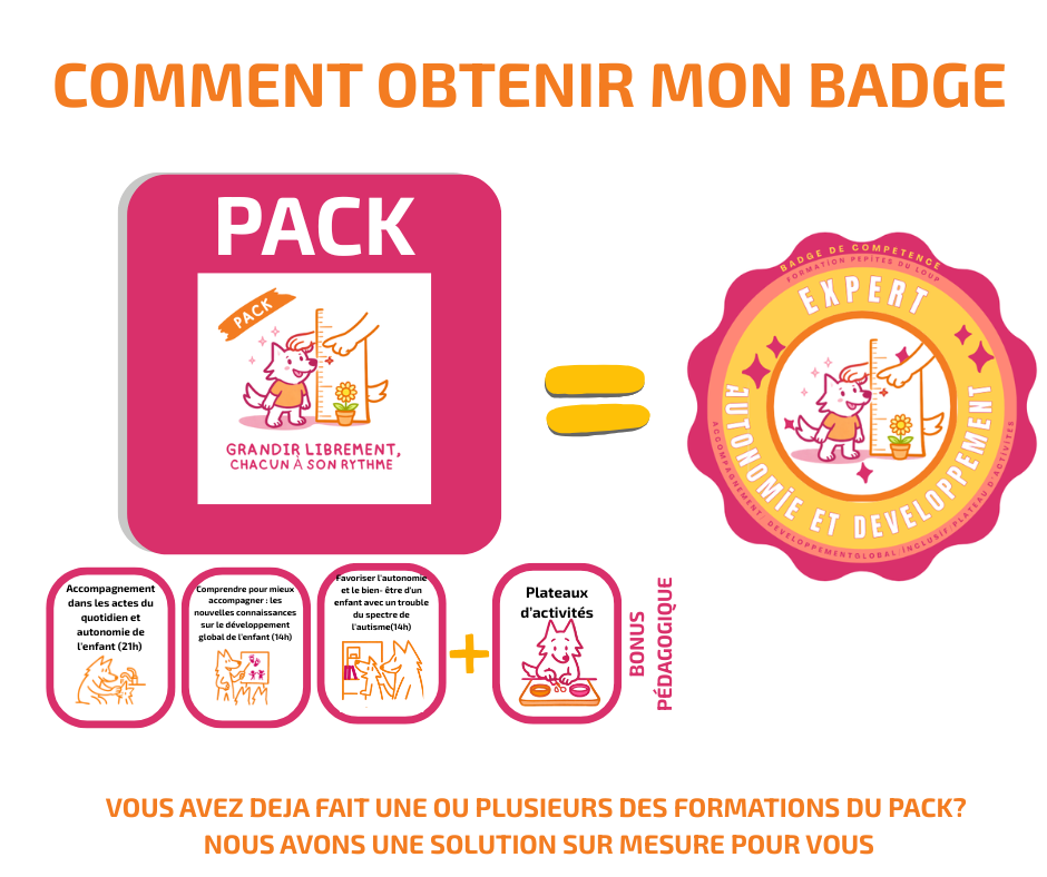 Ce badge reconnaît un professionnel capable de soutenir l’autonomie, la curiosité, la confiance et le développement global de l’enfant, grâce à des connaissances solides, une posture bienveillante et des pratiques adaptées, structurées et respectueuses.